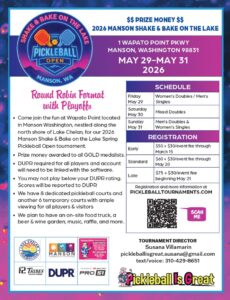 Announcing the 2026 Manson Shake & Bake on the Lake Spring Pickleball Tournament – May 29-31 2026